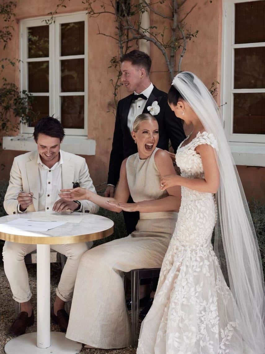Their meticulous attention to detail, craftsmanship and genuine love for dressmaking was evident throughout the entire process. My custom couture wedding gown was absolutely stunning – from the beautiful fabric to the intricate ruching, every detail was crafted to perfection. The incredible overskirt truly took my gown to the next level and I could not be happier! A very big thank you to Shehz, Harry and Clara for creating such a timeless gown. I thoroughly enjoyed our fittings, chats and getting to know you in the lead up to my wedding. Not only are you all so talented; you’re also incredible people who made me feel at ease the entire time. Thanks a million – I would definitely recommend Shehzarin Batha Couture to anyone wanting to create a beautiful gown.”