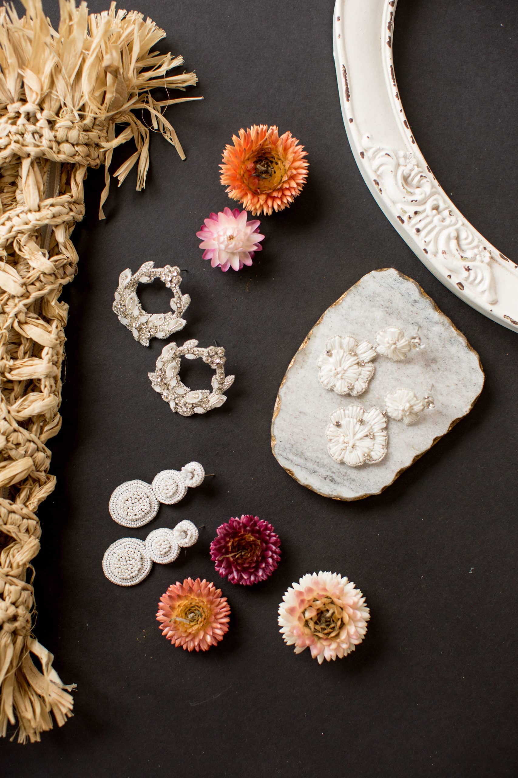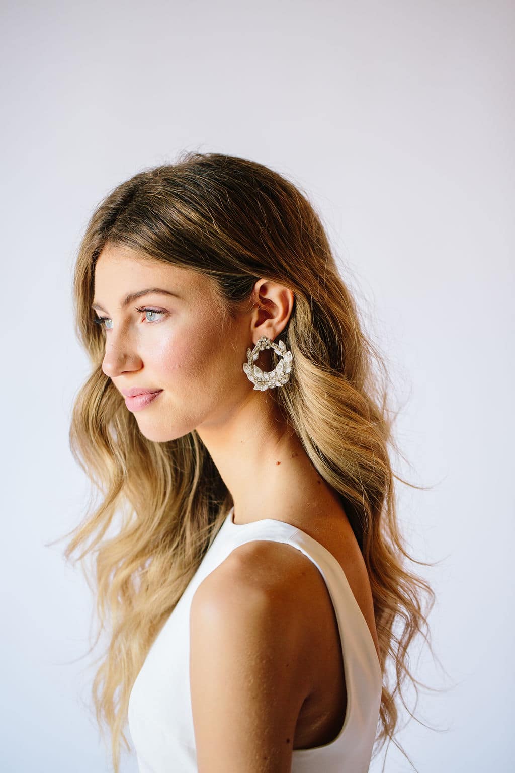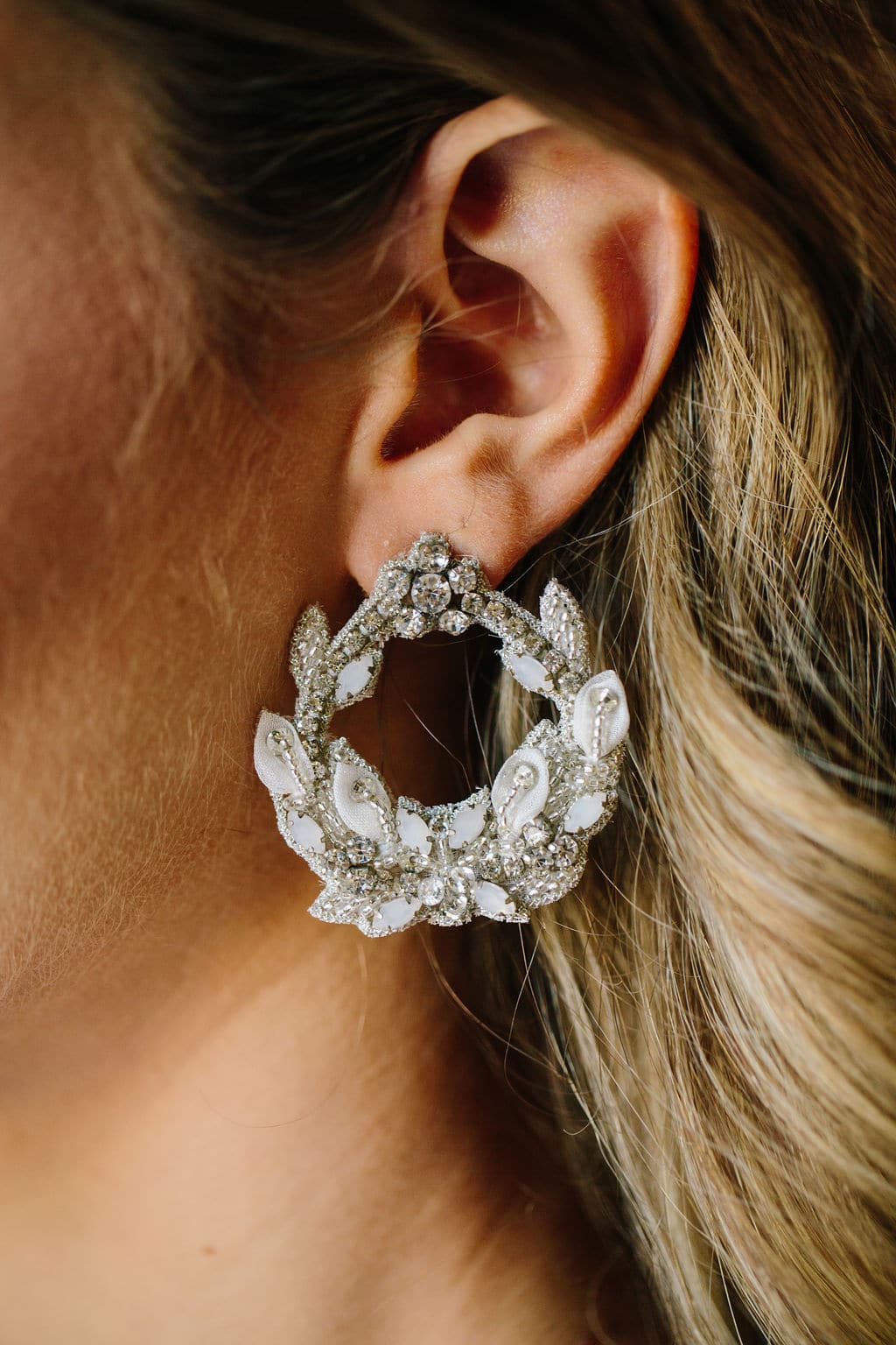 Beaded hoop earring with soft tulle leaf accents. Made to order – please allow 4 to 6 weeks for production. Colour: Silver