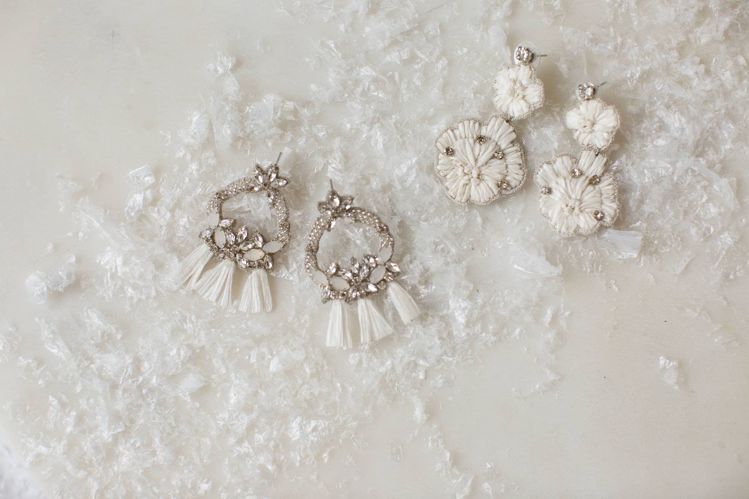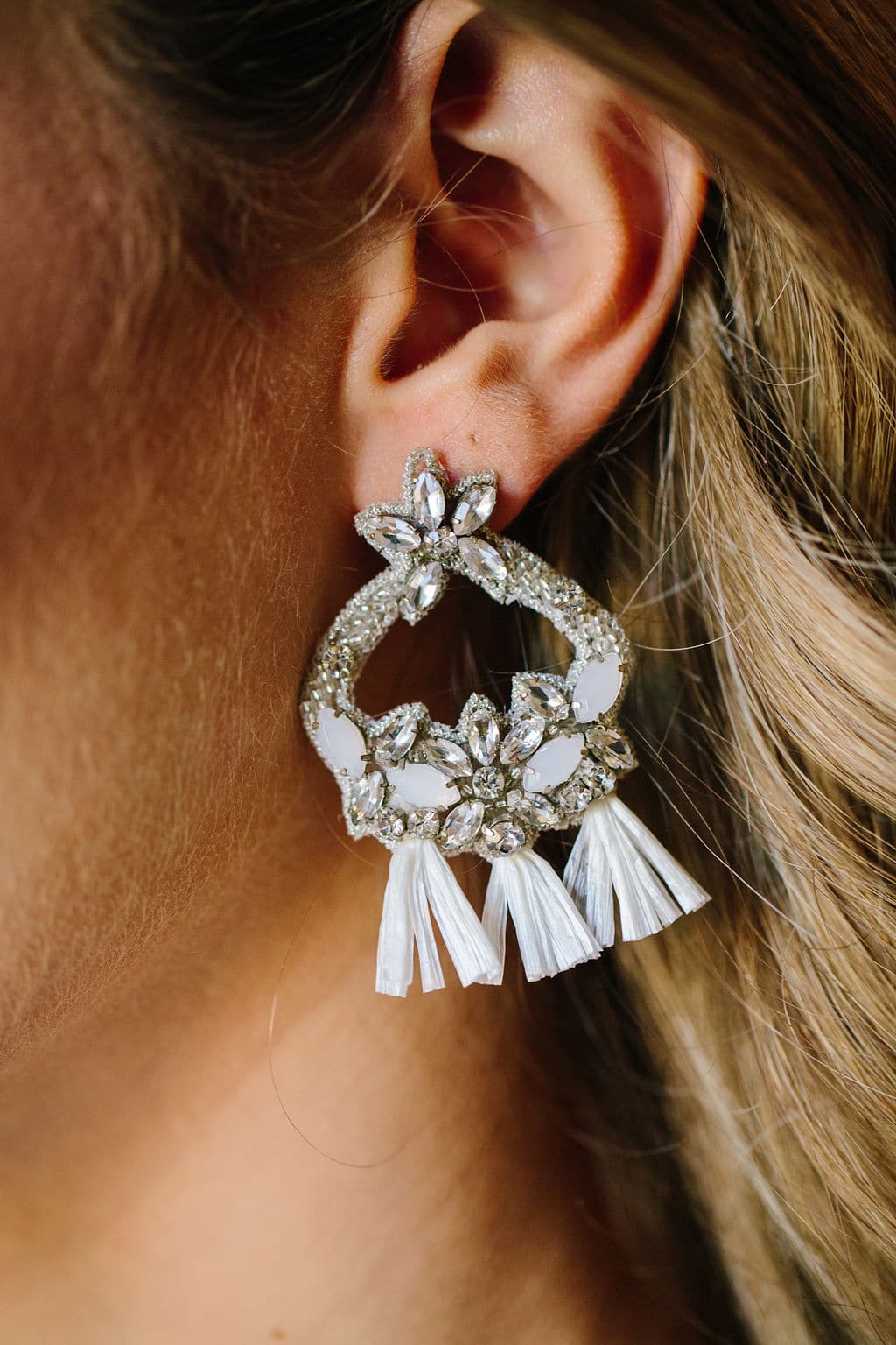 Single hoop earring with opal and raffia details. Made to order – please allow 4 to 6 weeks for production. Colour: Silver