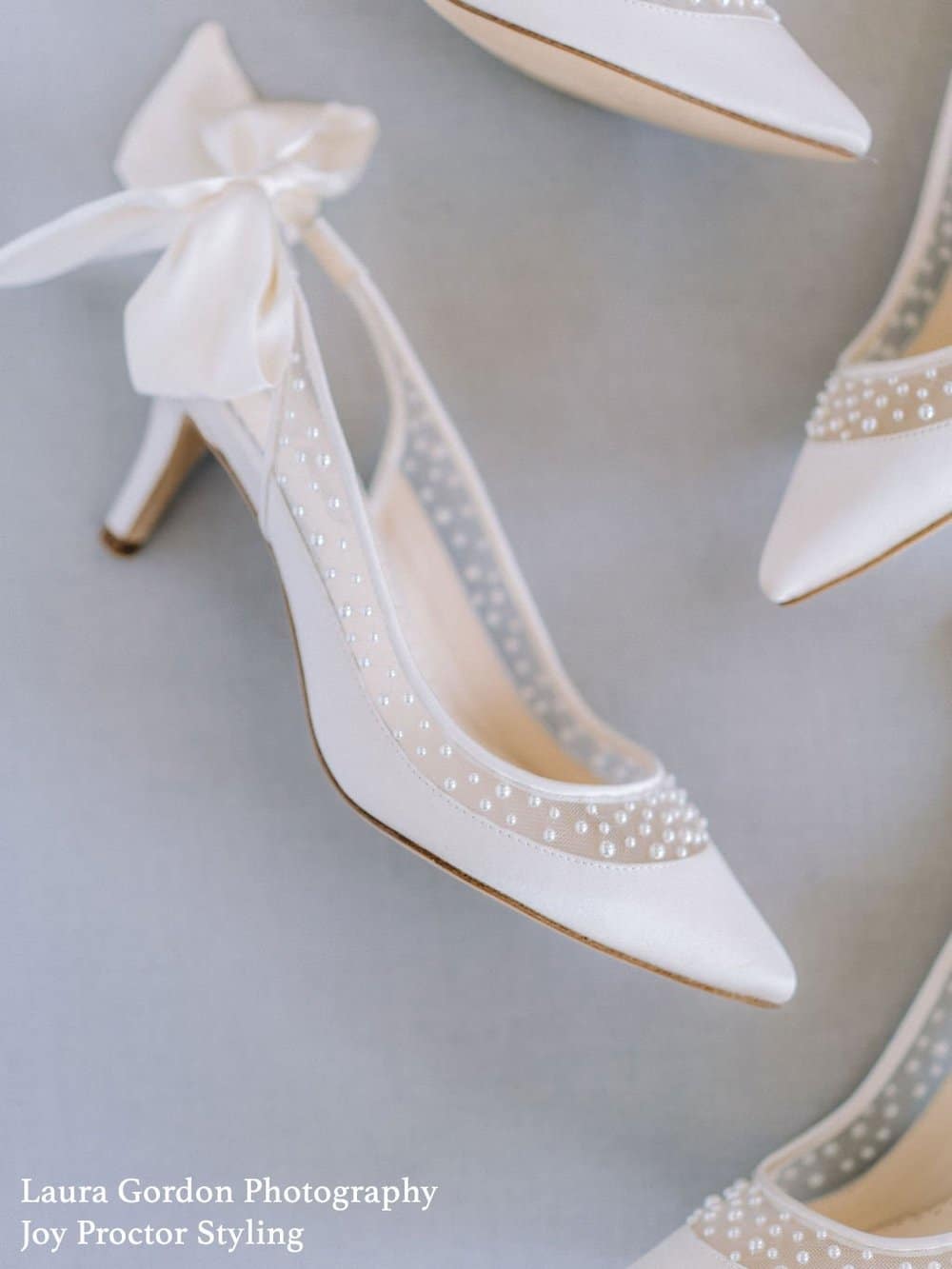 Crisp ivory silk on the bottom of Georgia follows the natural curve of your foot, with a careful scattering of tiny pearls above. A large silk bow at the heel will give extra bounce in your step. This elegant pointed toe slingback also features a comfortable kitten heel for all day wear.