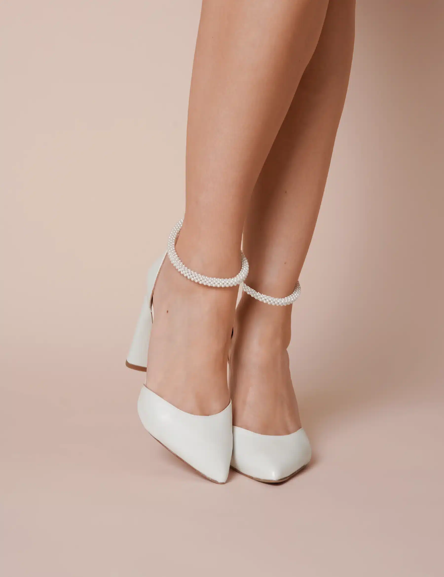 Chic by name, chic by nature. London brings a simple but elegant closed-toe design to our wedding shoe collection. The sleek high block-heel is finished in a luxurious shimmer pearl leather.
