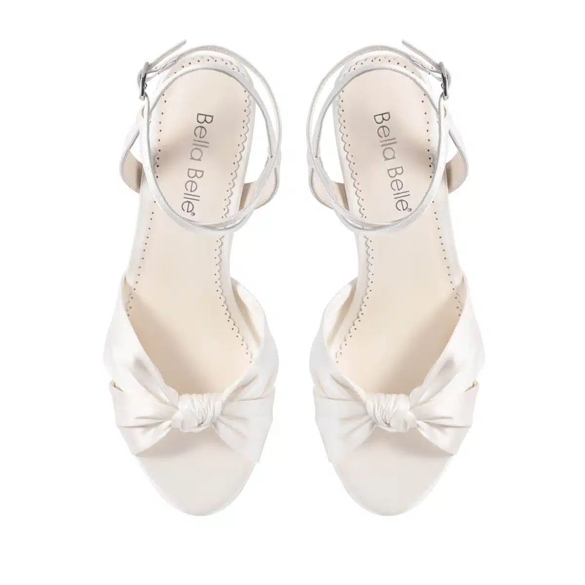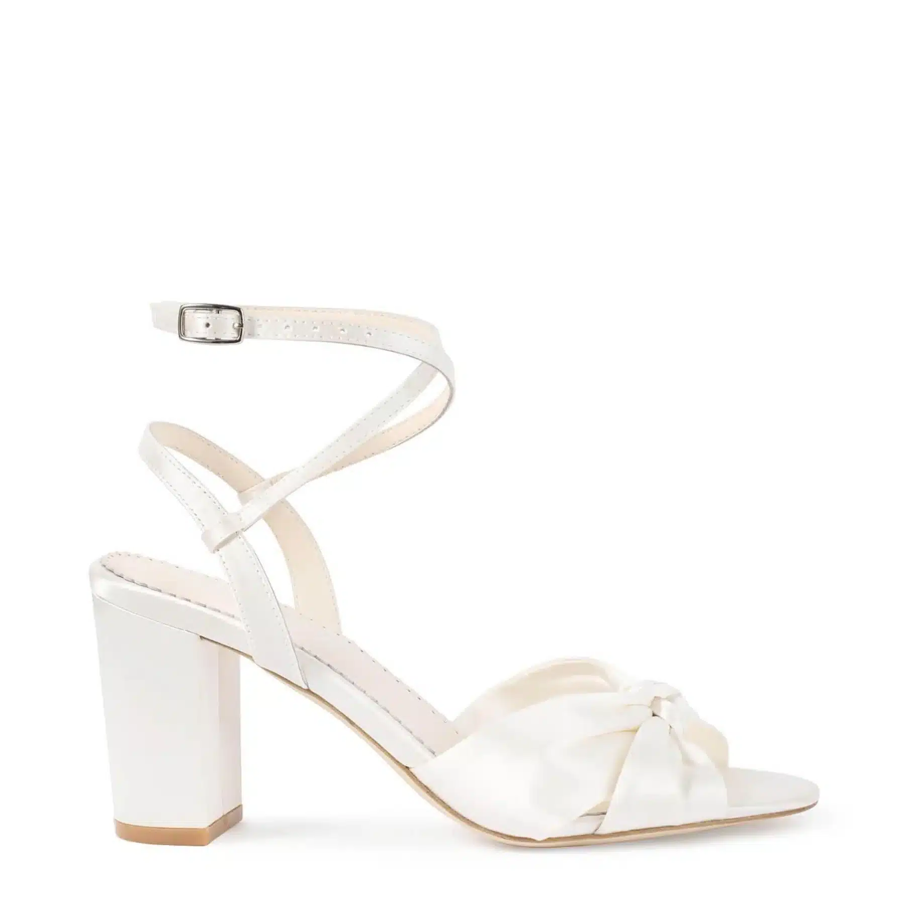 Sienna’s 3-inch ivory block heels boast our signature 12-hour comfortable insole padding and secure ankle strap for security. Elegant knotted silk at the toe makes Sienna the ideal choice for a confident and sophisticated look on your special day.